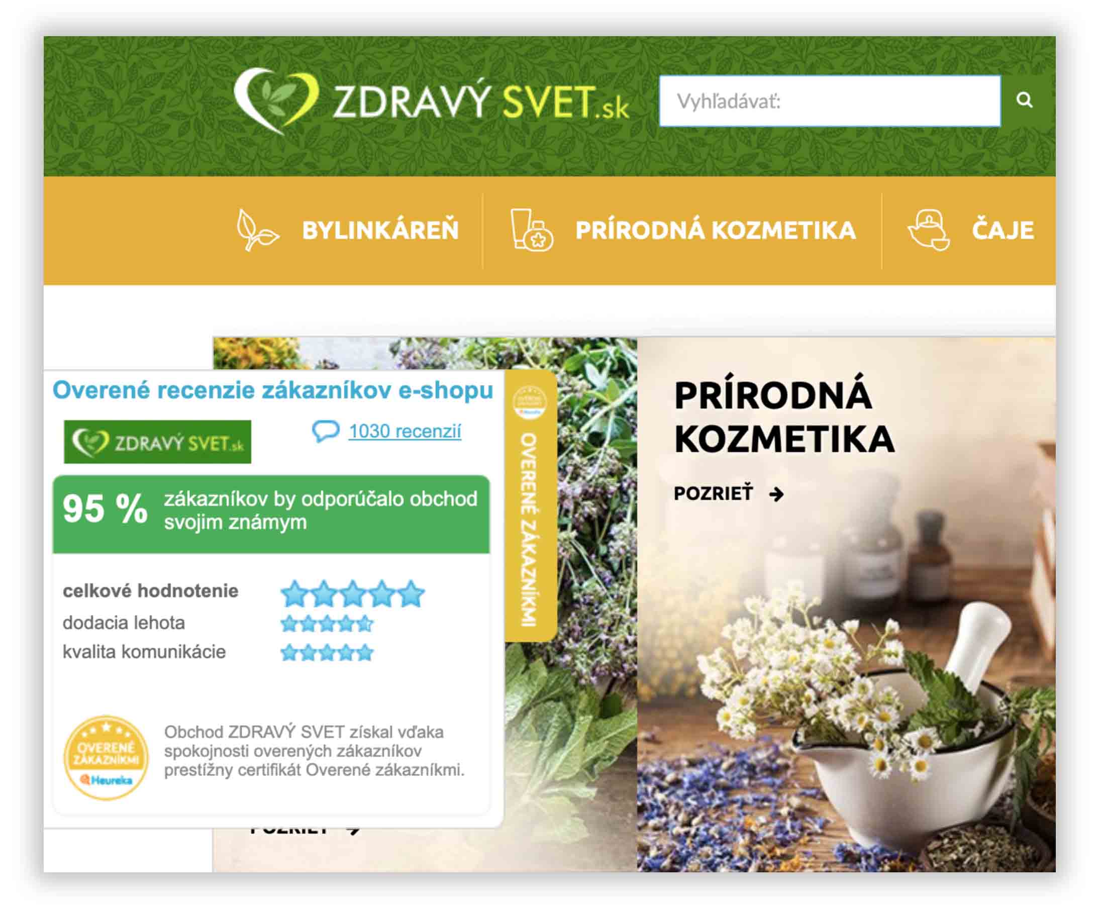 Zdravý svet v rámci svojho e-shopu prezieravo využíva rozšírenie Overené zákazníkmi od Heureky.